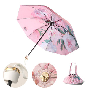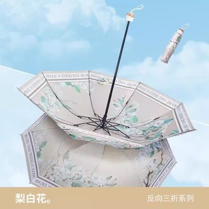 Xiaohongshu 二層両面花ビニール日傘日焼け止め UV 折りたたみ晴雨油絵兼用リバースサンシェード