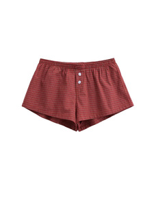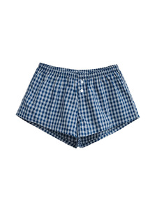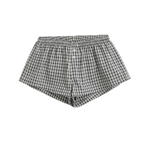 2025 夏のホットガール 2 ボタン弾性ウエストルーズワイドレッグショーツ女性の脚長さを示すホームカジュアルチェック柄ホットパンツ