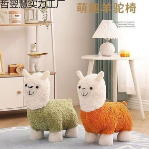 时尚小羊驼凳子卧室摆件网红羊驼坐凳新款儿童可爱轻奢毛绒可拆洗
