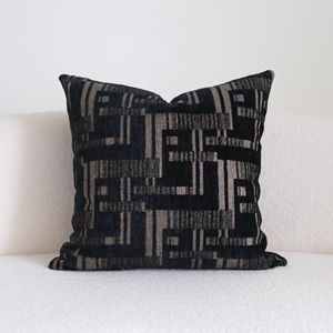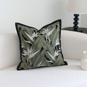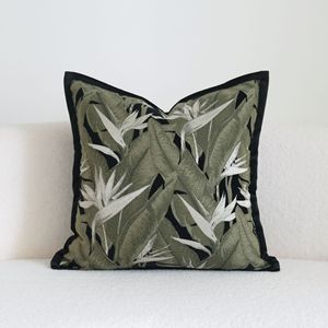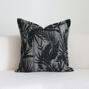 ライト高級リーフブラックエッジ枕綿とリネン枕カバーリビングルームソファクッションホテルB&Bモデルルーム枕カバー