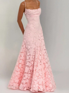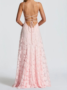 外国貿易フレンチハイエンドロマンチックスタイルバックレスストラップピンクジャカード気質セクシーサスペンダードレス