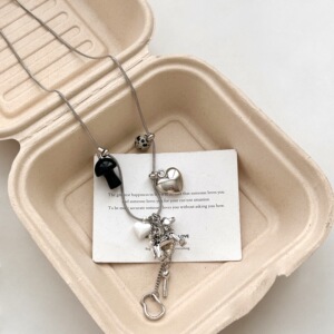 オリジナルデザインブロガーと同じスタイルのキノコ子犬タッセルネックレスニッチユニークな多用途ロングセーターチェーンアクセサリー女性用