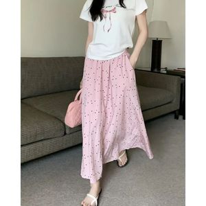 甜美风粉色波点半身裙女2025夏季款宽松高腰显瘦遮胯A字裙大摆裙