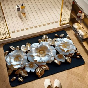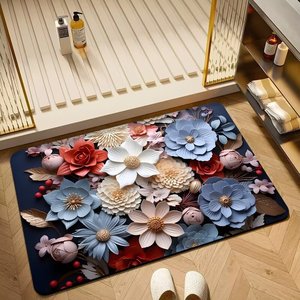 越境配送対応 3D立体フラワー柄 浴室マット 吸水速乾 滑り止め フットマット 家庭用 トイレ 玄関マット