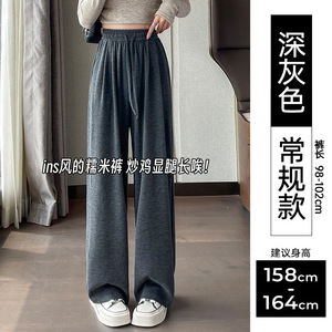 アプリコットもち米パンツレディースパンツ2025春夏新作ゆったりカジュアルストレートパンツドレープレイジーニットワイドレッグパンツ