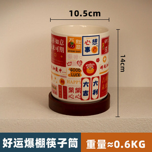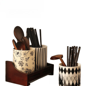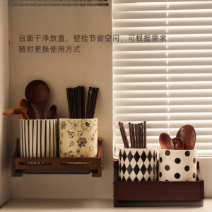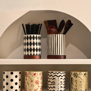圆点筷子筒+圆木底座【底部有滤水孔】