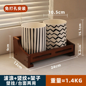 波浪筷子筒+圆木底座【底部有滤水孔】