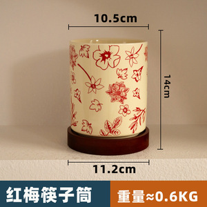 红梅筷子筒+圆木底座【底部有滤水孔】