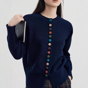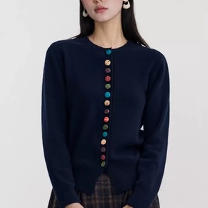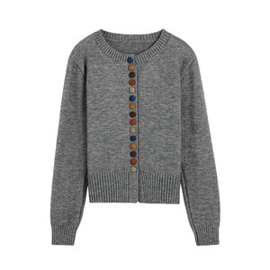 新款圆领彩扣毛衣开衫外套女独特洋气针织衫上衣潮秋冬季宽松外穿