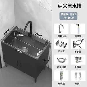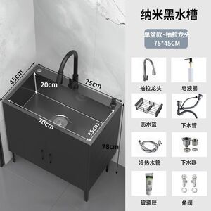 木语#黑色柜体-纳米黑金刚单槽【75*45】全套抽拉龙头