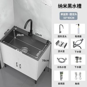 木语#黑色柜体-纳米黑金刚单槽【50*40】冷热龙头全套