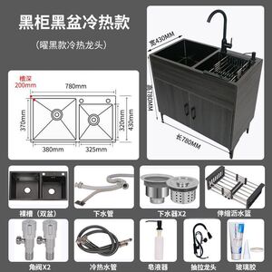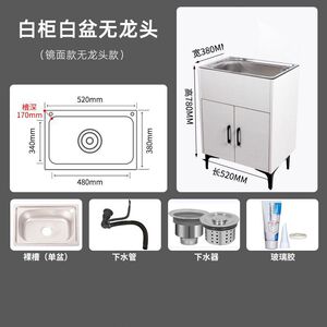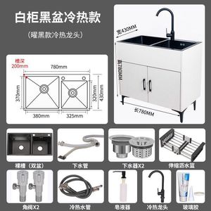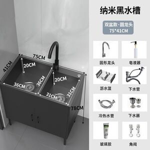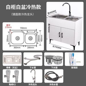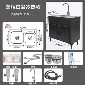 家用厨房不锈钢实木水槽柜出租房单双槽洗碗池简易洗菜盆一体柜子
