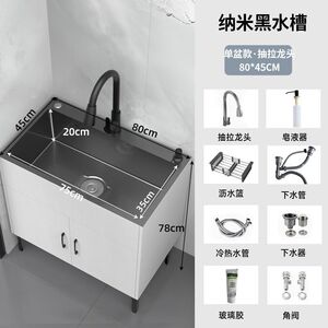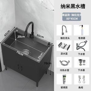 木语#黑色柜体-纳米黑金刚单槽【80*45】全套抽拉龙头