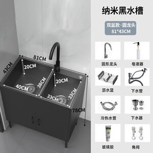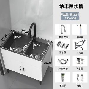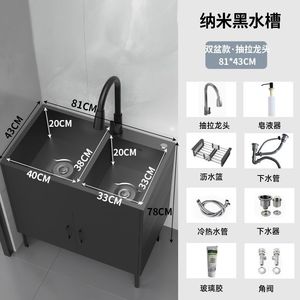 木语#黑色柜体-纳米黑金刚双槽【81*43】全套抽拉龙头