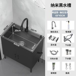 木语#黑色柜体-纳米黑金刚单槽【68*45】全套抽拉龙头