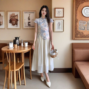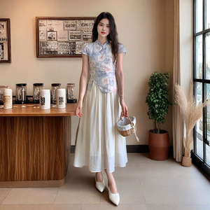 2025夏季新款复古气质假两件刺绣长裙新中式国风改良旗袍连衣裙女