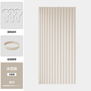 (【磁気吸着なし】ベージュ折戸カーテン(ロッドなしシングルカーテン+白ボールリング))