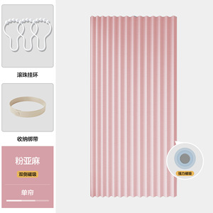 (【両面マグネット吸着】ピンク折戸カーテン(ロッドなしシングルカーテン+白ボールリング))