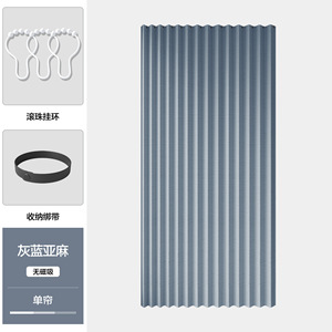 (【磁気吸着なし】グレーブルー折戸カーテン(ロッドなしシングルカーテン+白ボールリング))