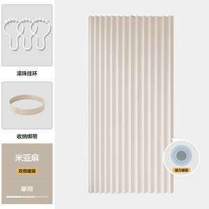 (【両面マグネット吸着】ベージュ折戸カーテン(ロッドなしシングルカーテン+白ボールリング))