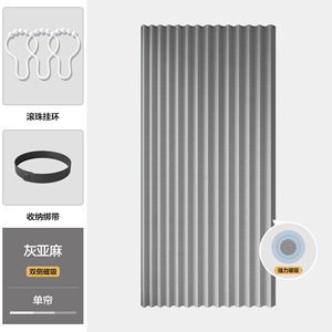 (【両面磁気吸着】グレー折戸カーテン(ロッドなしシングルカーテン+白ボールリング))