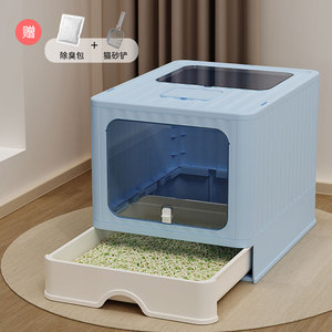 特大猫トイレ、完全密閉型、飛沫防止、消臭引き出し式猫トイレ、殺菌、防臭、高さと厚さを増加
