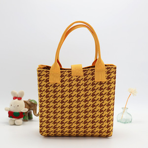 新款针织高级感千鸟格大容量百搭个性手织手提包拎包简约大方通勤