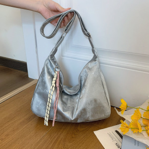 レトロ通勤無地2025新作ファッションペンダントシンプルで美しいカジュアル大容量外国風脇の下トートバッグ