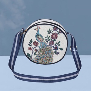 新款云南名族绣花斜挎包双面时尚刺绣小象手机包百搭金丝单肩 包