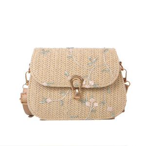 卸売新鮮で甘いわら織り小さな正方形のバッグ女性のバッグ 2025 夏の新しいフラワーレースショルダーバッグ多用途クロスボディバッグ