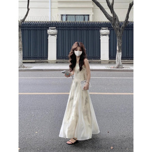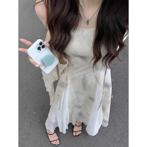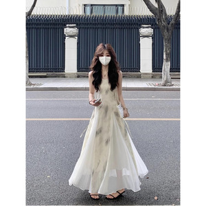 新しい中国風のカップルの服水墨画サスペンダーレトロドレス夏のウエスト痩身ハイエンドの新しい気質ロングスカート