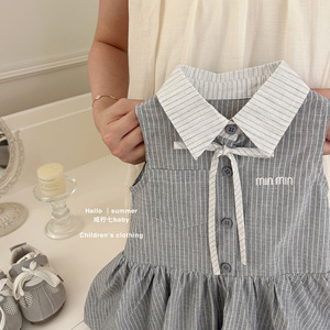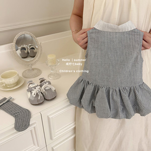 【塩寧七】オリジナルミュウカレッジスタイル!女の子サマーベストドレスベビーガールドレスストライプスカート