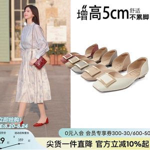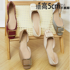 在庫あり~身長を伸ばす 6cm フレンチレトロスクエアトゥ RV 浅口スクエアバックル中空靴シンプルなパテントレザー通勤職業