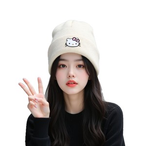 新款kt卡通图案硅胶针织帽可爱时尚猫咪针织帽牢固帽子女款时尚