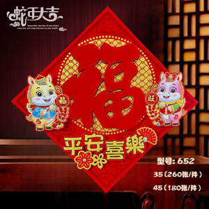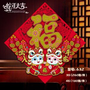 2026马年新品工厂直销背胶植绒立体烫金剪纸网红卡通福字春节