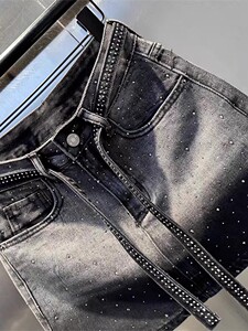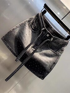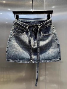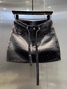 プラスサイズのレトログラデーションホットダイヤモンドデニムスカート女性のための夏のファットmmハイウエスト痩身ヒップカバーアラインメントショートスカート