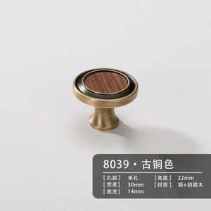 中世スタイルの真鍮ハンドルブロンズワードローブドアキャビネット引き出しフレンチシンプルウォールナット単穴クリエイティブハンドル
