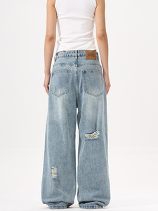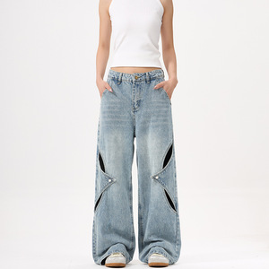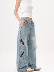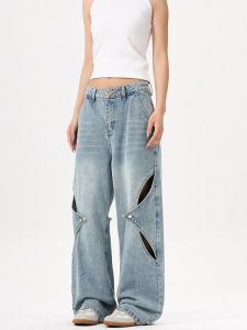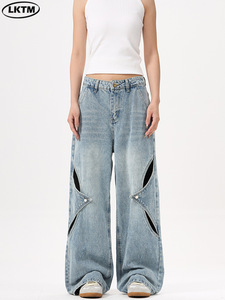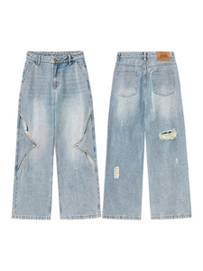 LKTM メンズ アメリカン ハイストリート 中空デコンストラクト リップド ジーンズ 男女兼用 トレンド ブランド ハンサム デザイン ストレート パンツ