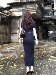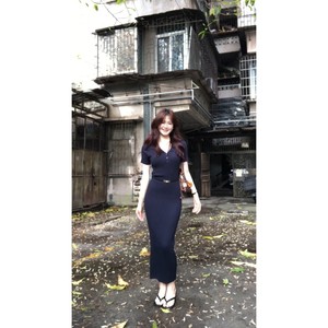 韩版 V领法式包臀长裙修身通勤百搭气质高级感御姐短袖收腰连衣裙