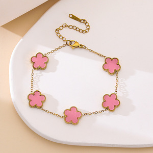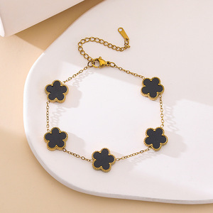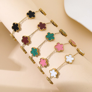 国境を越えたヨーロッパとアメリカの売れ筋四つ葉のクローバーと五つ葉の花のブレスレット、軽い高級感とハイエンドのホットスタイルの女性用卸売ジュエリーアクセサリーブレスレット