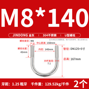 ✅ 304 ステンレス鋼 U 字型ボルト U 字型クランプ U 字型ネジ パイプクランプ クランプ パイプクランプ M6M8M10M12M16