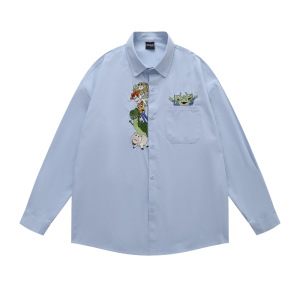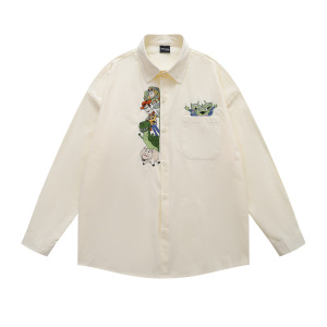 アメリカンレトロ漫画刺繍長袖シャツメンズ 2025 秋オーバーサイズカップルカジュアルシャツジャケット
