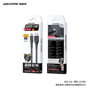 wekome战神PVC材质1米2米3米长6A快充PD20W数据传输480mbps充电线