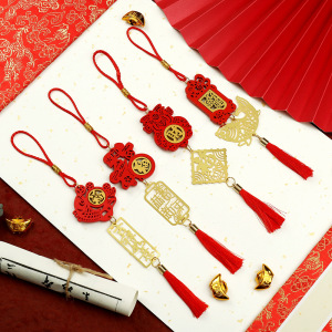 新年盆栽绿植双色木制特色挂饰新居乔迁之喜门把手布置装饰品挂件