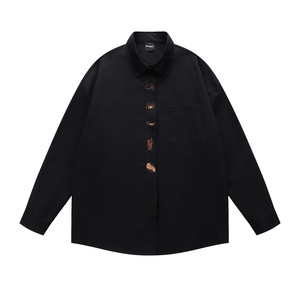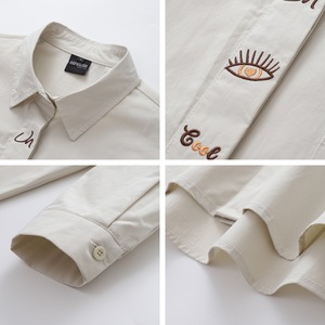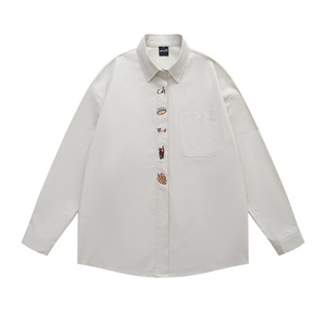日本のレトロなクリエイティブデザイン刺繍長袖シャツ男性と女性のための 2025 秋ルーズカップルシャツジャケット