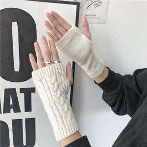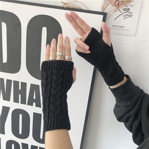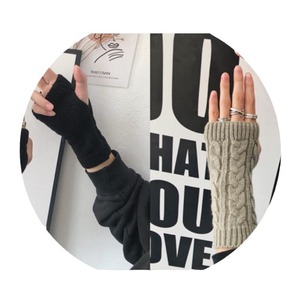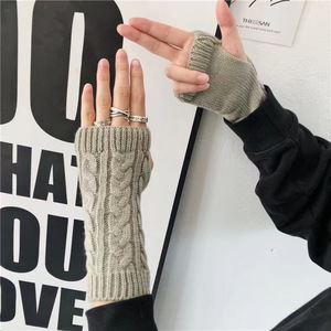 针织手套女秋冬露指手套男护腕保暖半指毛线手套纯色学生情侣假袖