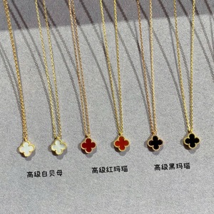 高バージョンラッキーフラワー鎖骨ネックレスレディースカルセドニー18kローズゴールドファンジアミニ四つ葉のクローバーペンダントギフト