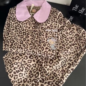 韓国版ヒョウ柄キティ猫パジャマ女性の夏の新しい半袖ショーツスーツ美少女ホーム服 2 点セット