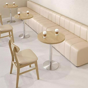 奶茶店奶油原木风靠墙无靠背卡座沙发咖啡厅甜品店成套餐桌椅组合