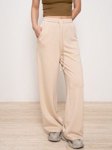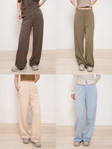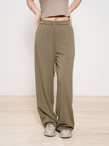 ワイドレッグパンツ、高級感のある夏用ルーズパンツ、女性用カジュアルパンツ、ウエストゴム、巾着ニットスウェットパンツ